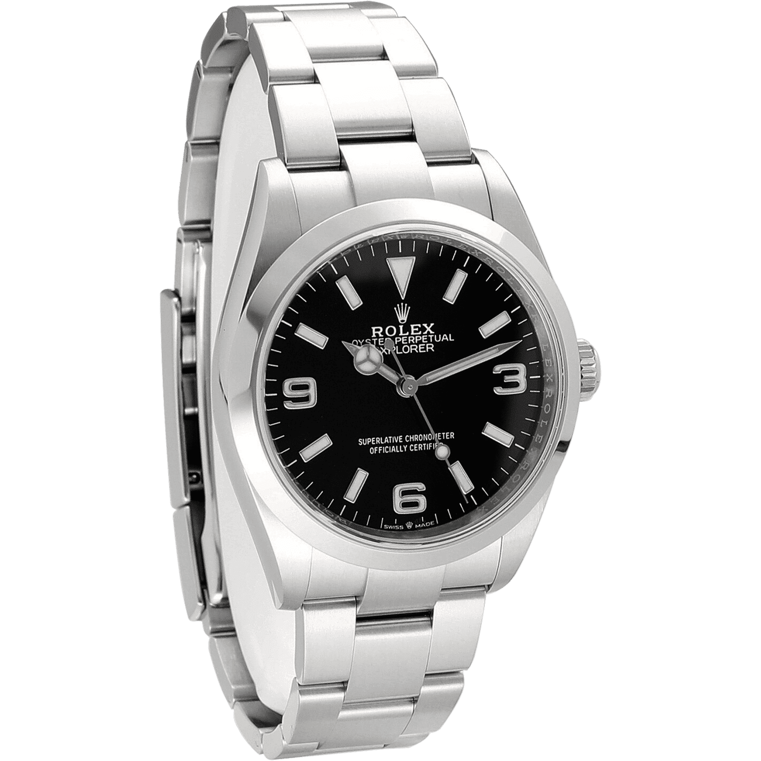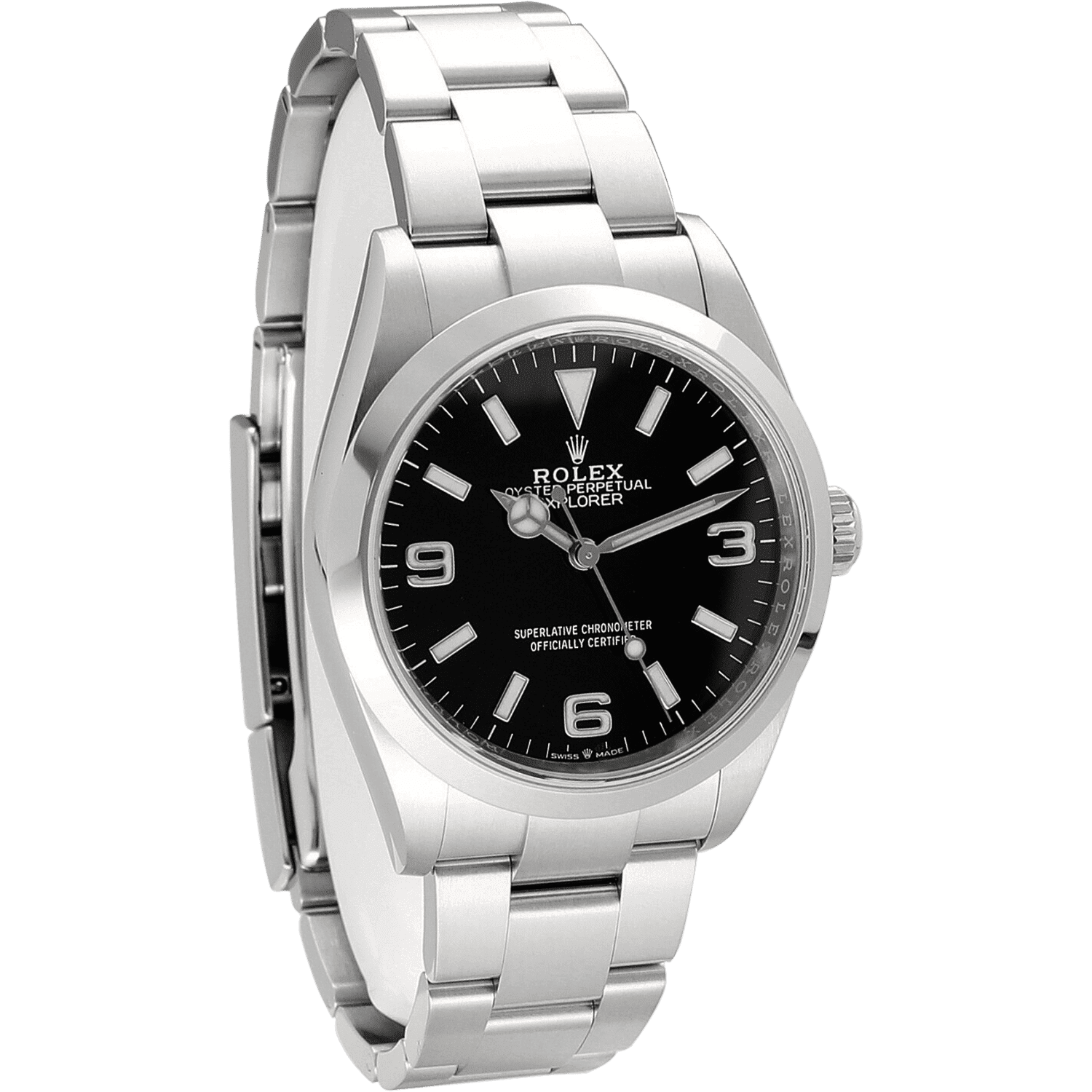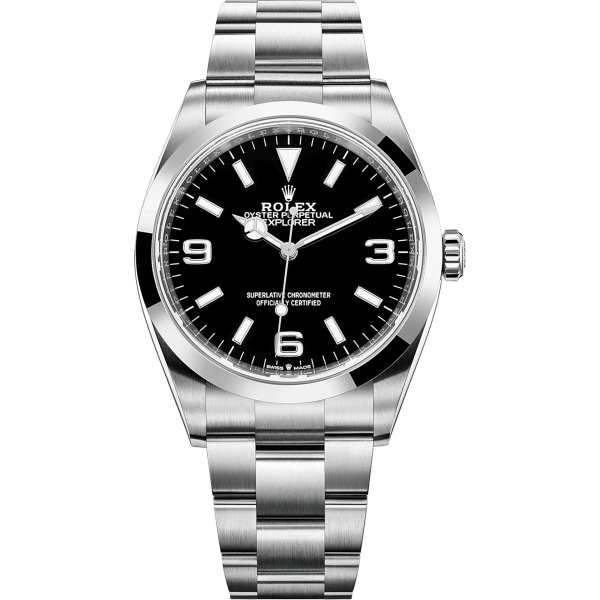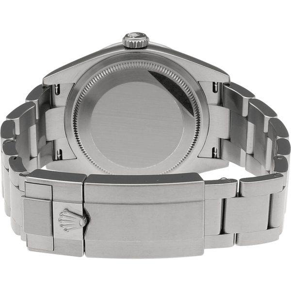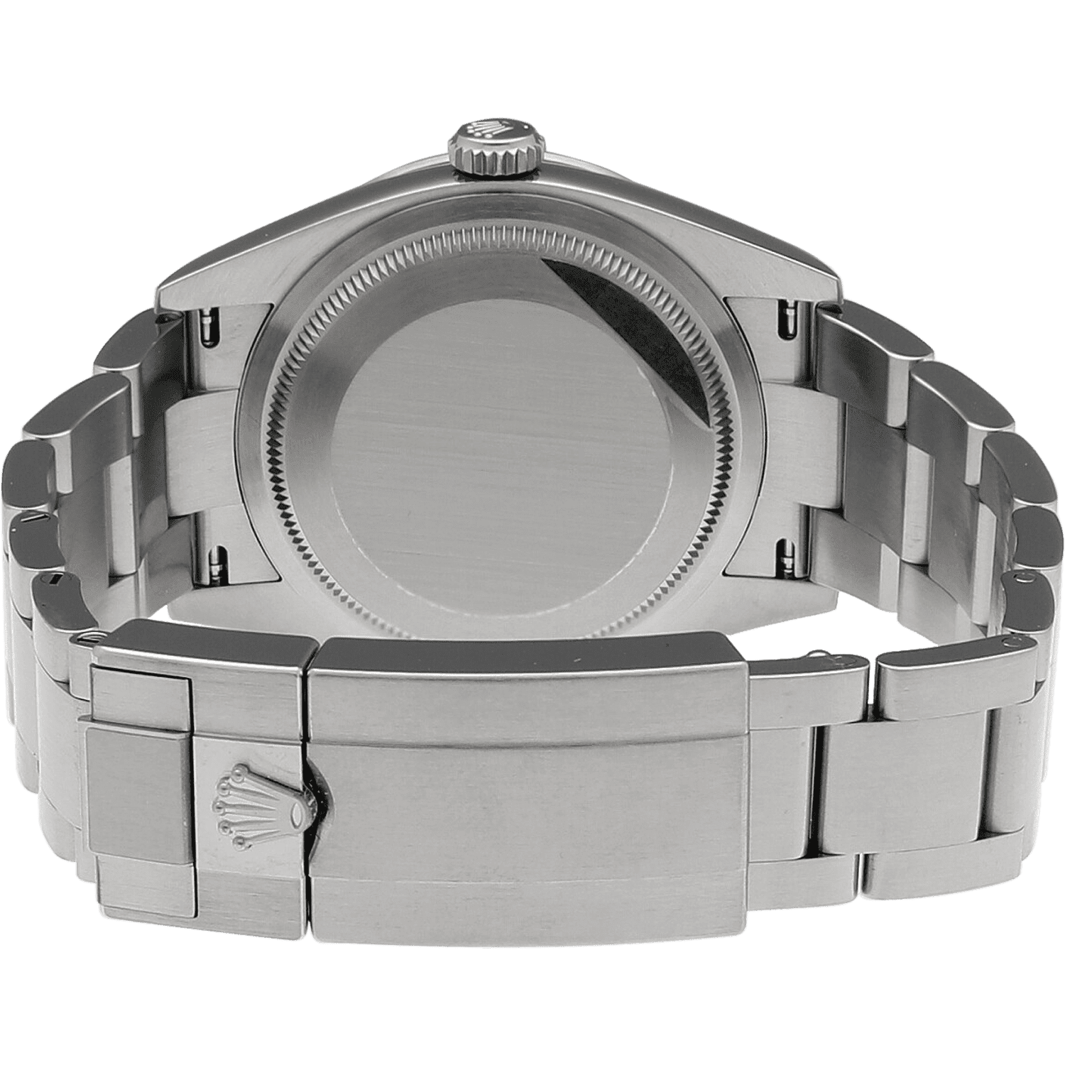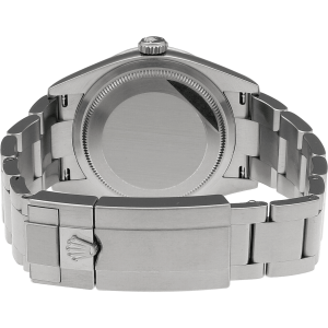 Dial diameter: 36 mm. 904L stainless steel case with silver stainless steel bracelet. Fixed silver stainless steel bezel. Black dial with indexed Arabic numerals. Automatic movement. Has about 70 hours of power reserve. Scratch resistant sapphire crystal. Tighten the crown. Sturdy back cover. Folding Oysterlock safety buckle with easylink 5mm comfort extension links. Water resistant to 100 meters/330 feet.