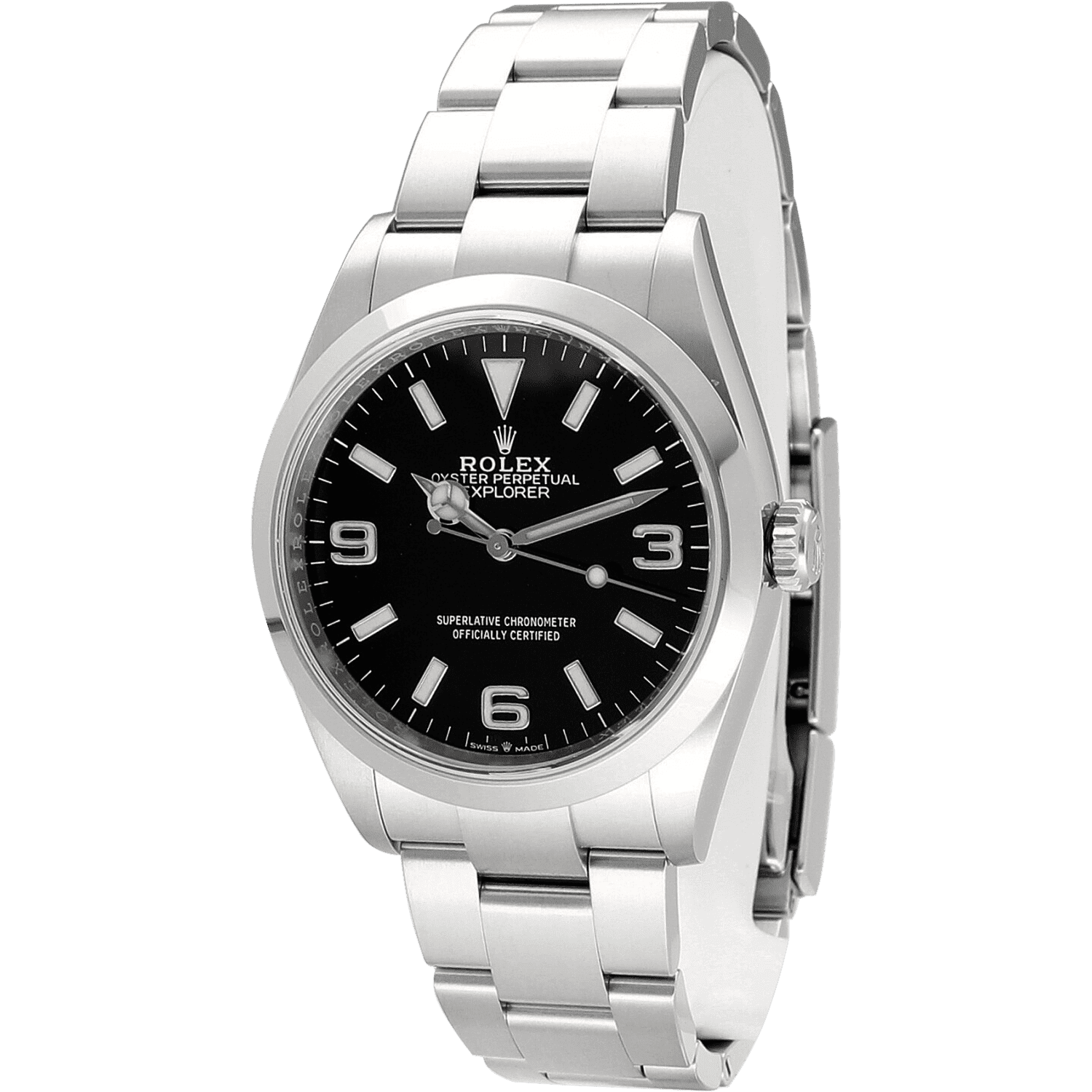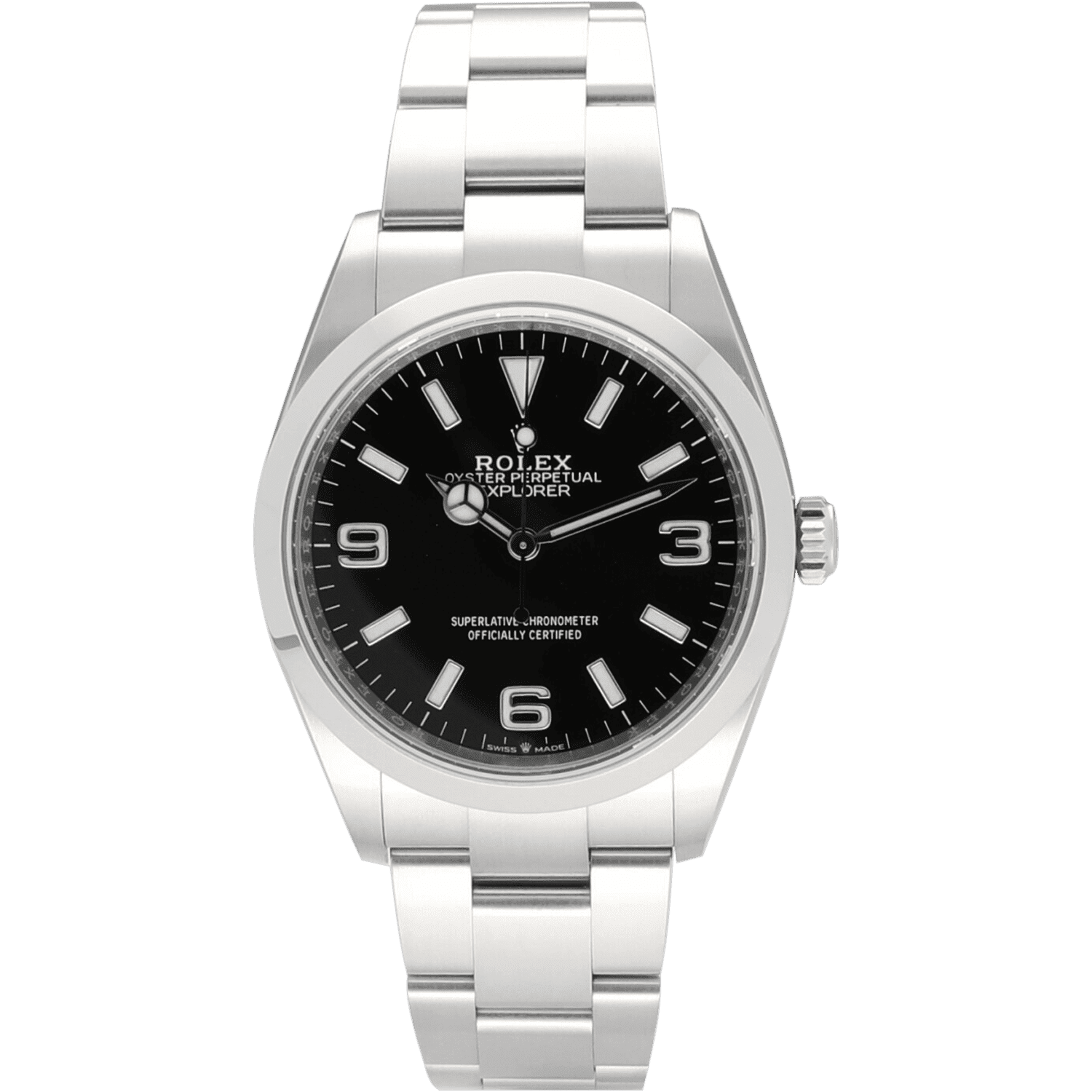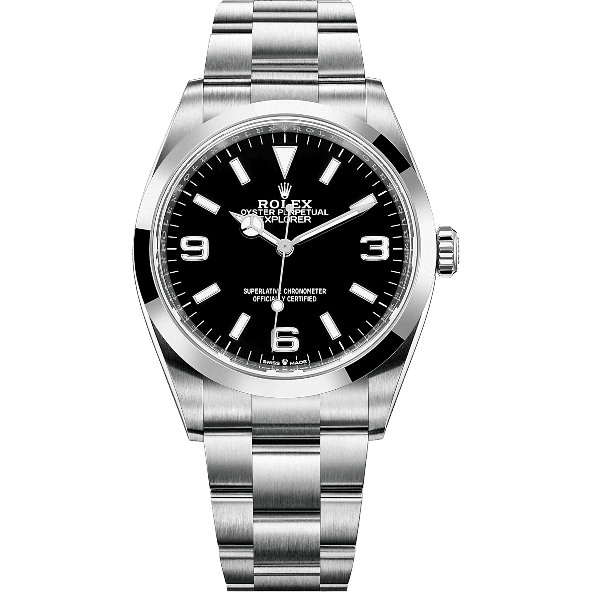 Dial diameter: 36 mm. 904L stainless steel case with silver stainless steel bracelet. Fixed silver stainless steel bezel. Black dial with indexed Arabic numerals. Automatic movement. Has about 70 hours of power reserve. Scratch resistant sapphire crystal. Tighten the crown. Sturdy back cover. Folding Oysterlock safety buckle with easylink 5mm comfort extension links. Water resistant to 100 meters/330 feet.