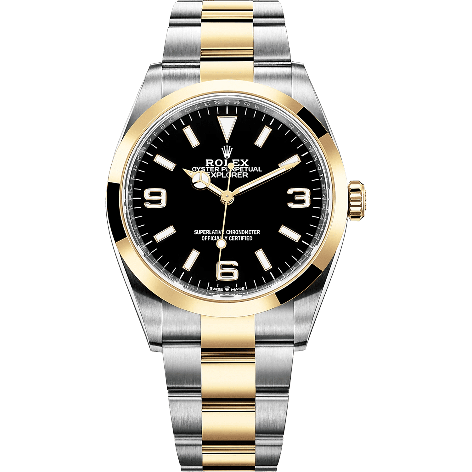Dial diameter: 36 mm. 904L stainless steel black dial, polished gold hour and minute hands, luminous filling. A fine minute/second track is printed on the edge of the dial. Highly clear chromatic display with persistent blue glow. Scratch resistant sapphire crystal. Mechanical self-winding movement. Kinetic energy storage is approximately 70 hours. Waterproof depth: 100 meters �C 330 feet. Clasp Type: Folding Oysterlock with Easylink 5 mm Comfort Extension.