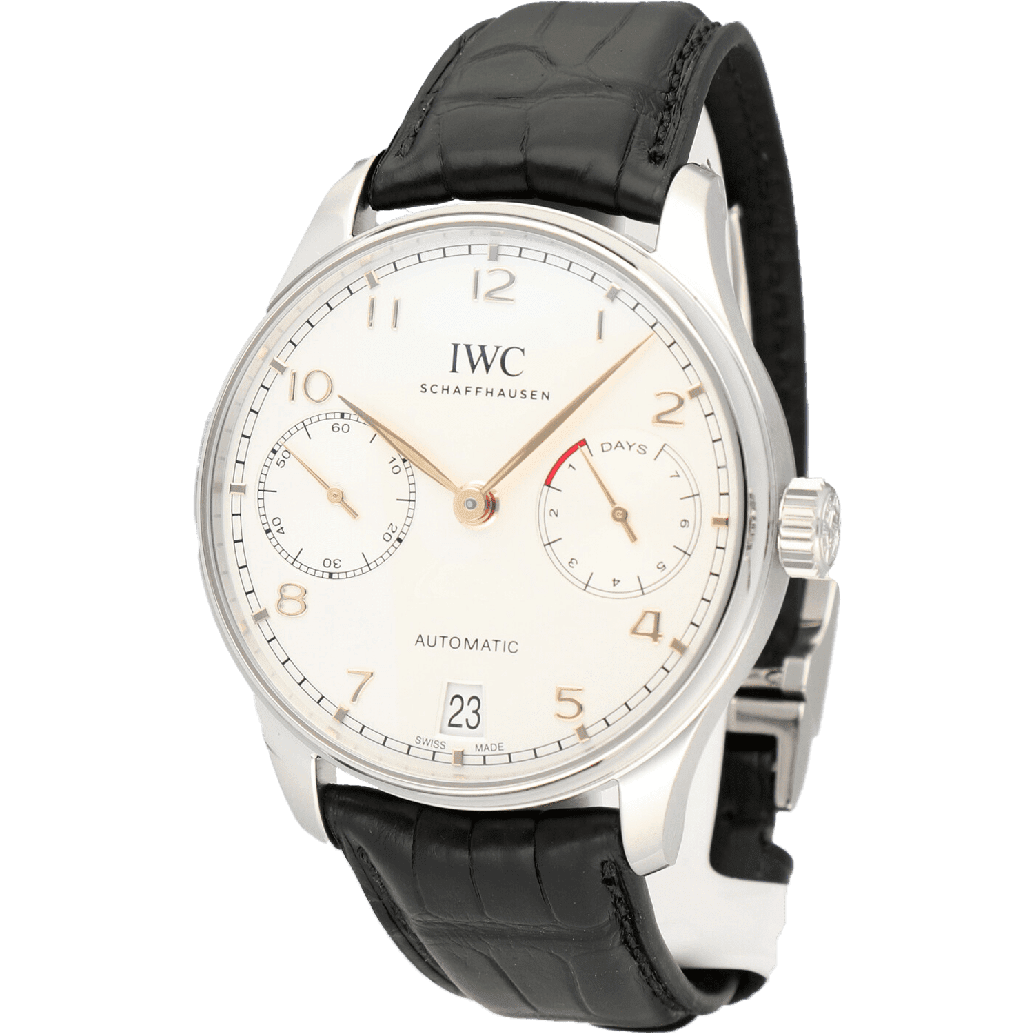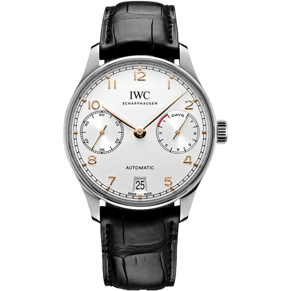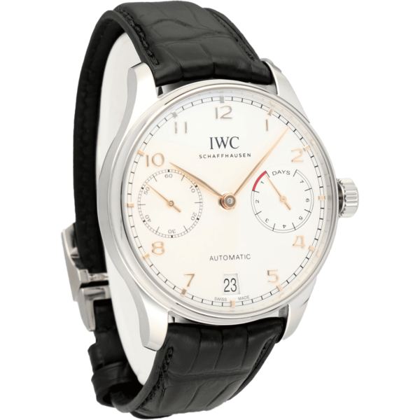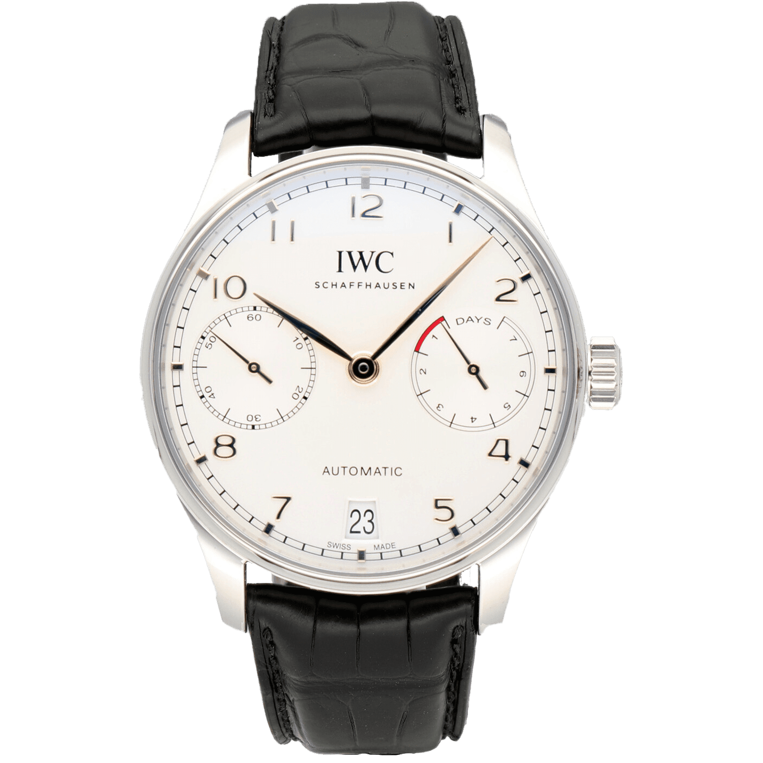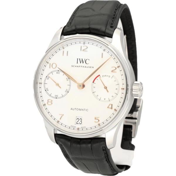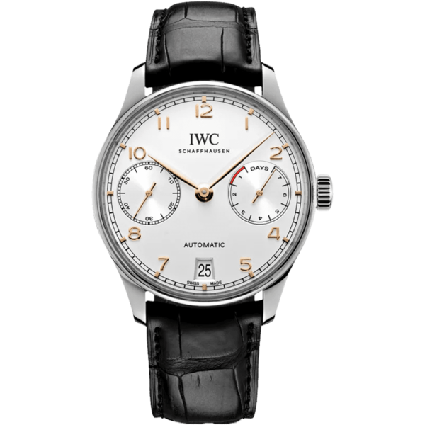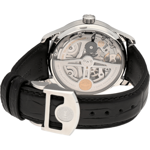 Case: stainless steel case. Diameter 42.3 mm. Transparent sapphire glass back. Water-resistant to 30 m. Movement: self-winding. 168-hour power reserve. 257 components. 31 jewels. C tes de Genève, perlage. features: 7-day power reserve. Power reserve indicator. Date display. Sapphire glass, convex, anti-reflective coating on both sides. Bileton self-winding. Rotor with gold medallion. Small hacking seconds. Dial: silvered dial. Strap: Black alligator leather strap. Strap width 22 mm. Functions: hours, minutes, seconds, date.